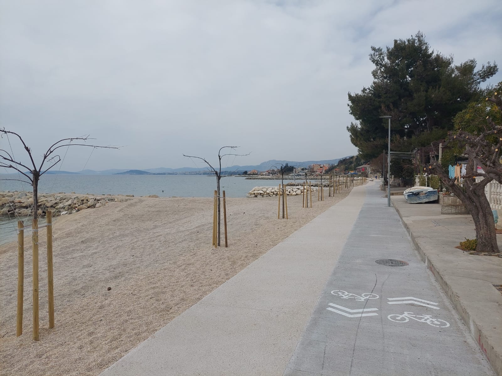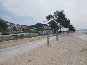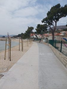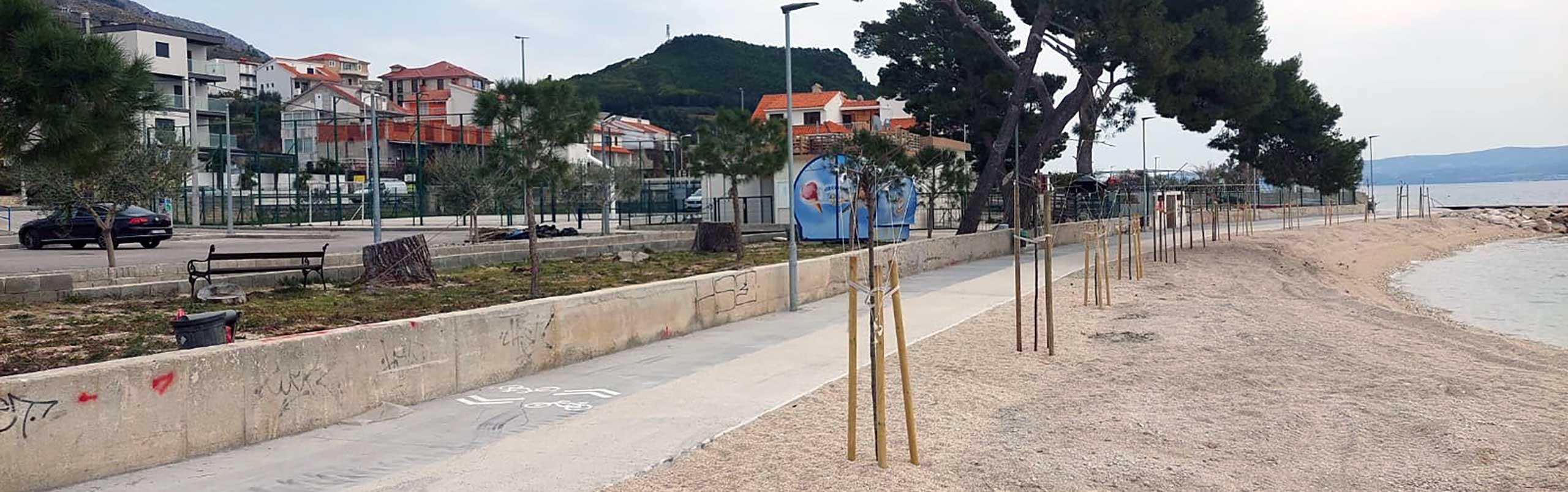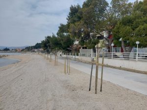 Uz uređenu šetnicu, mediteranski ambijent obogaćen je sadnjom stabala tamarisa.