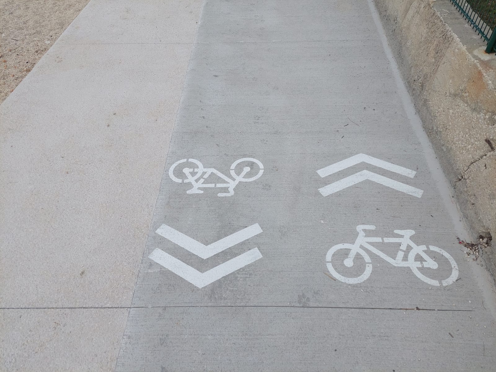 Pješačka staza širine 1.60 m izvedena je završnom obradom prema tehnologiji kulir tzv. prani beton, dok je biciklistička staza minimalne širine 1.60 m izvedena završnom obradom tzv. metlani beton.