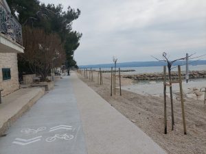 U sklopu izvođenja radova na Sanaciji dijela obalnog pojasa u Mutograsu, Općina Podstrana izgradila je zajedničku biciklističko-pješačku stazu u duljini oko 250 m. Širina biciklističko-pješačke staze iznosi minimalno 3.20 m cijelom dužinom, a podijeljena je na dva segmenta različite teksture i boje. Uređena šetnica primarno će se korisiti za pješački i biciklistički promet, uz mogućnost prolaska interventnog vozila.