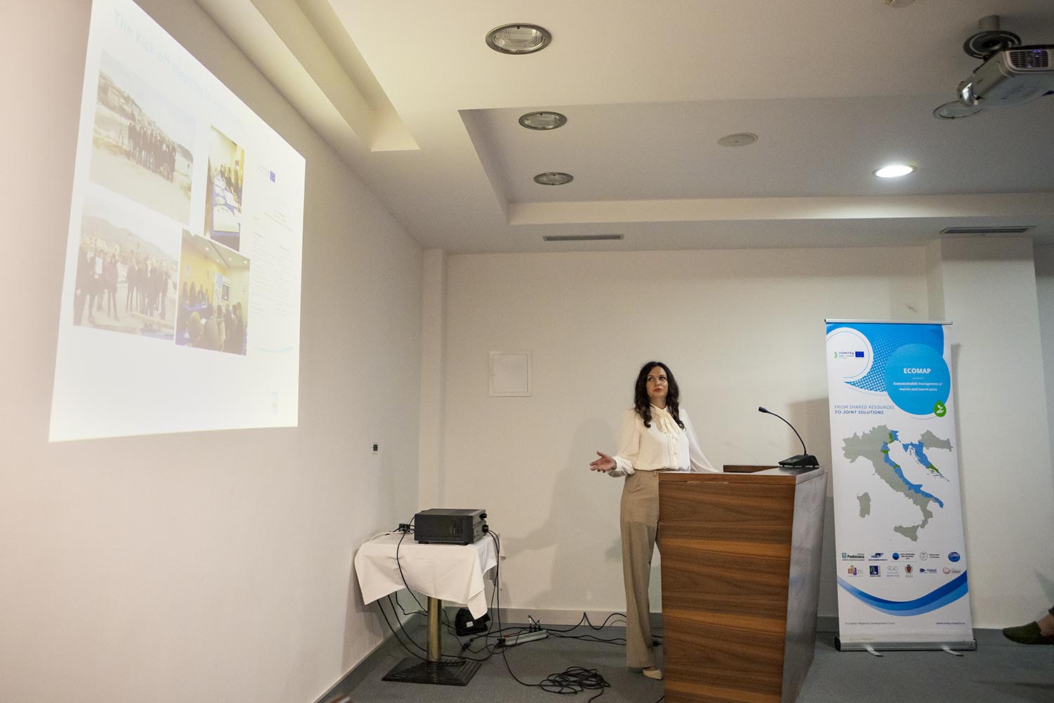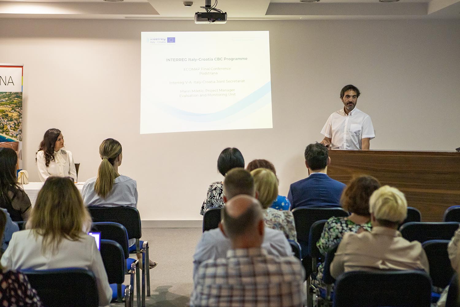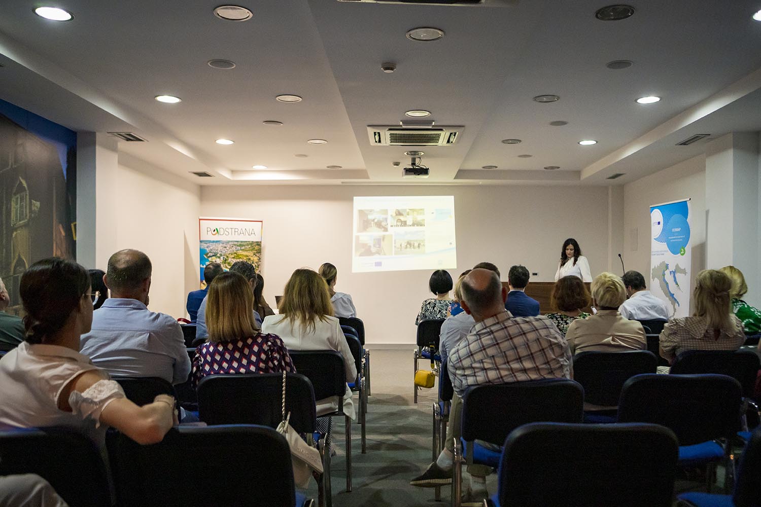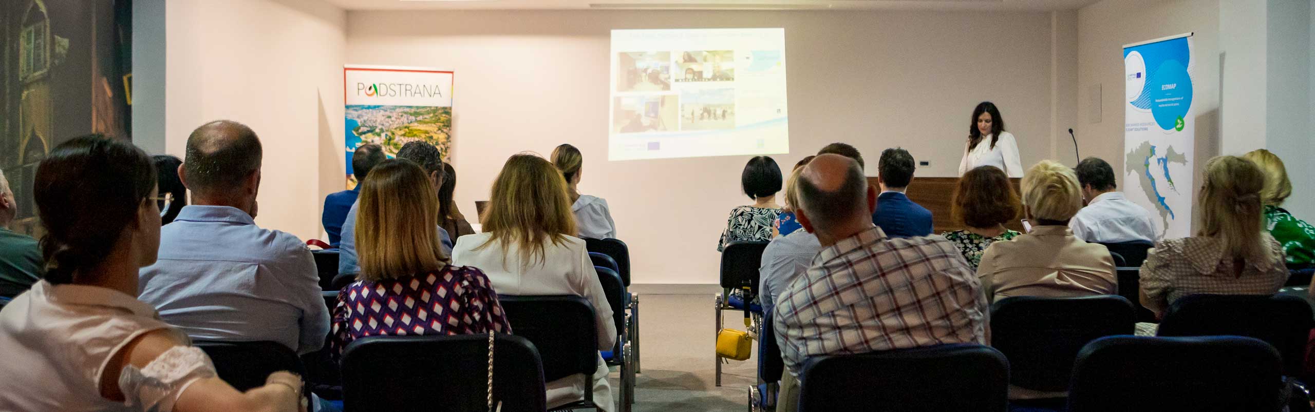 Završnu konferenciju uvodnim govorom otvorila je koordinatorica projekta gđa Andrijana Dedić, a prisutnima su se pozdravnim govorima obratili g. Mijo Dropuljić, načelnik općine Podstrana, gđa Ivana Živković, predstavnica Ministarstva regionalnoga razvoja i fondova Europske unije te g. Michele Polenta, Član Vijeća za okoliš Općine Ancona. G. Marin Miletić, predstavnik Zajedničkog tajništva Regije Veneto predstavio je nacrt Programa Interreg Italija – Hrvatska 2021 – 2027.