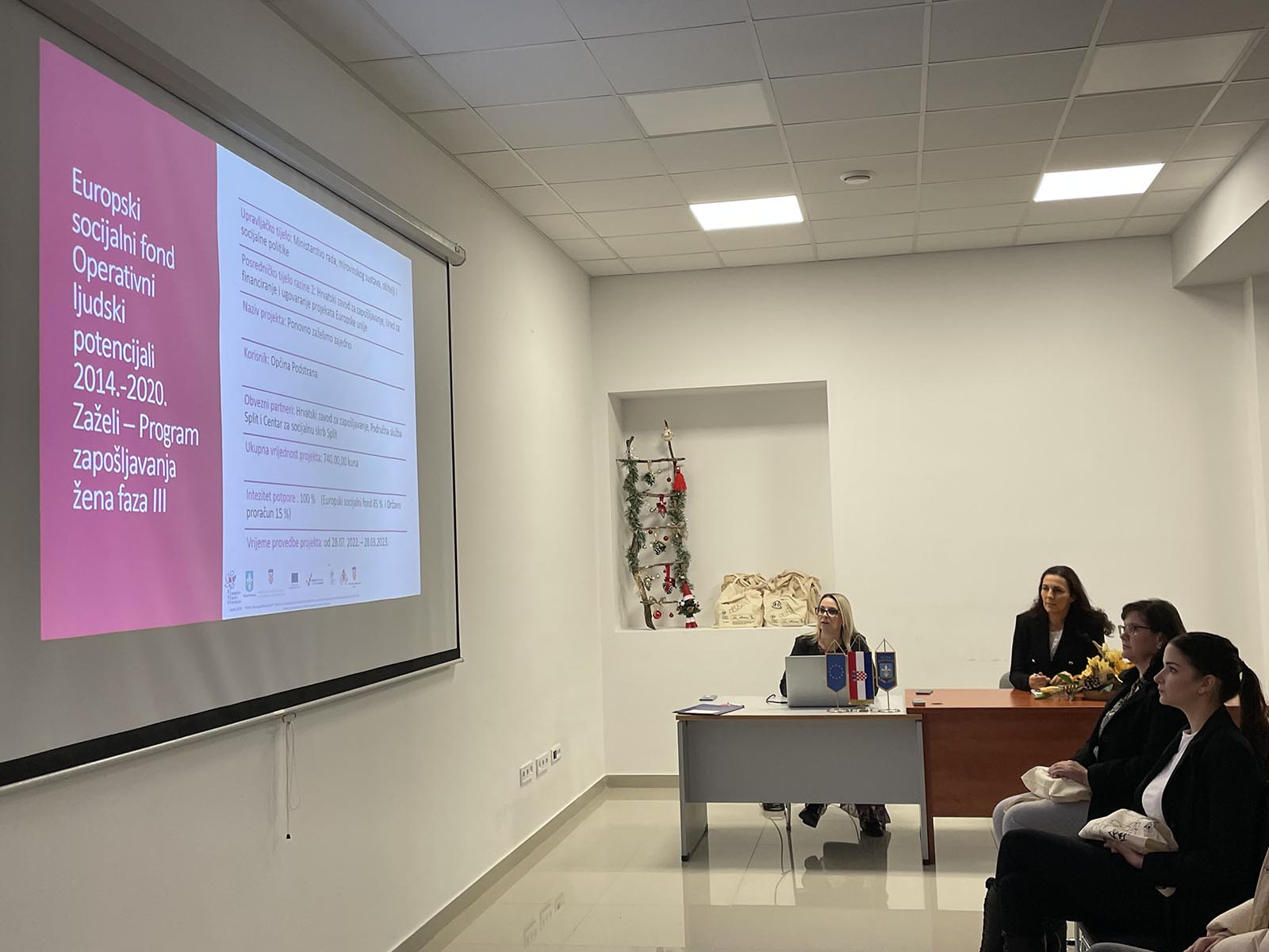 Sve prisutne je pozdravila pročelnica Upravnog odjela za javnu nabavu, gospodarstvo, društvene djelatnosti i EU fondove, gđa. Marija Šošić te izrazila zadovoljstvo dosadašnjim tijekom projekta.
