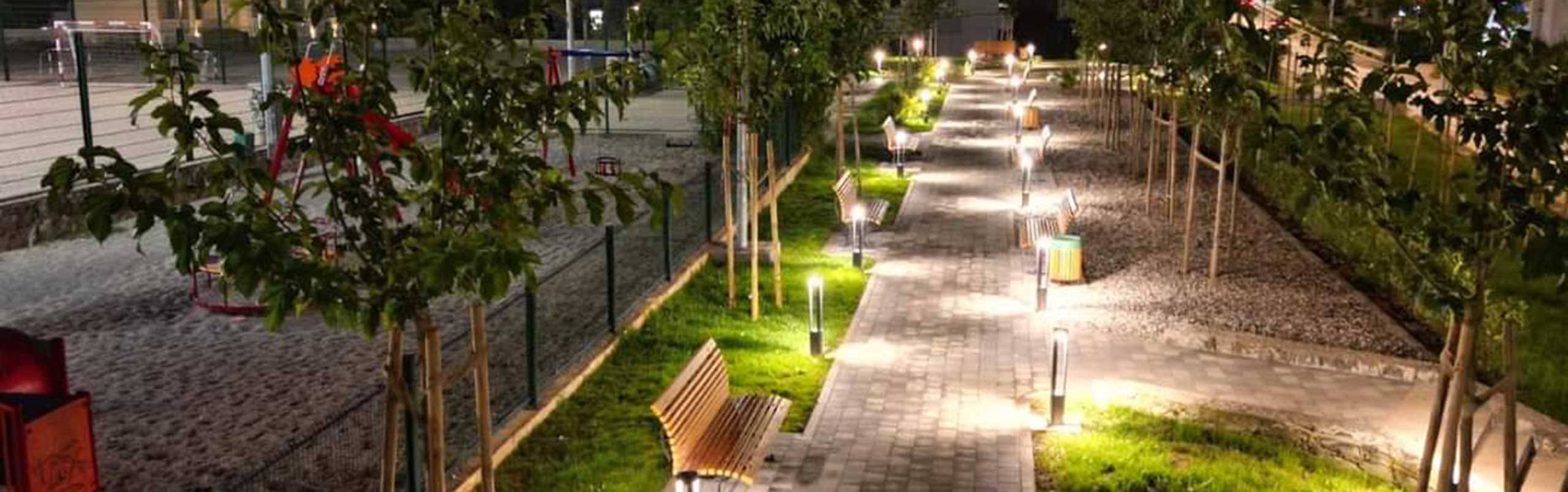 Park je osmišljen kao nova hortikulturalna zona površine oko 1000 m2. Na novom travnatom dijelu posađena su stabla muške murve, magnolije, platane i palme, a između stabala posađeni su i lovor višnja, pitospora i abelija. Kroz park se proteže šetnica s klupama za odmor, koševima za otpad i led rasvjetom.