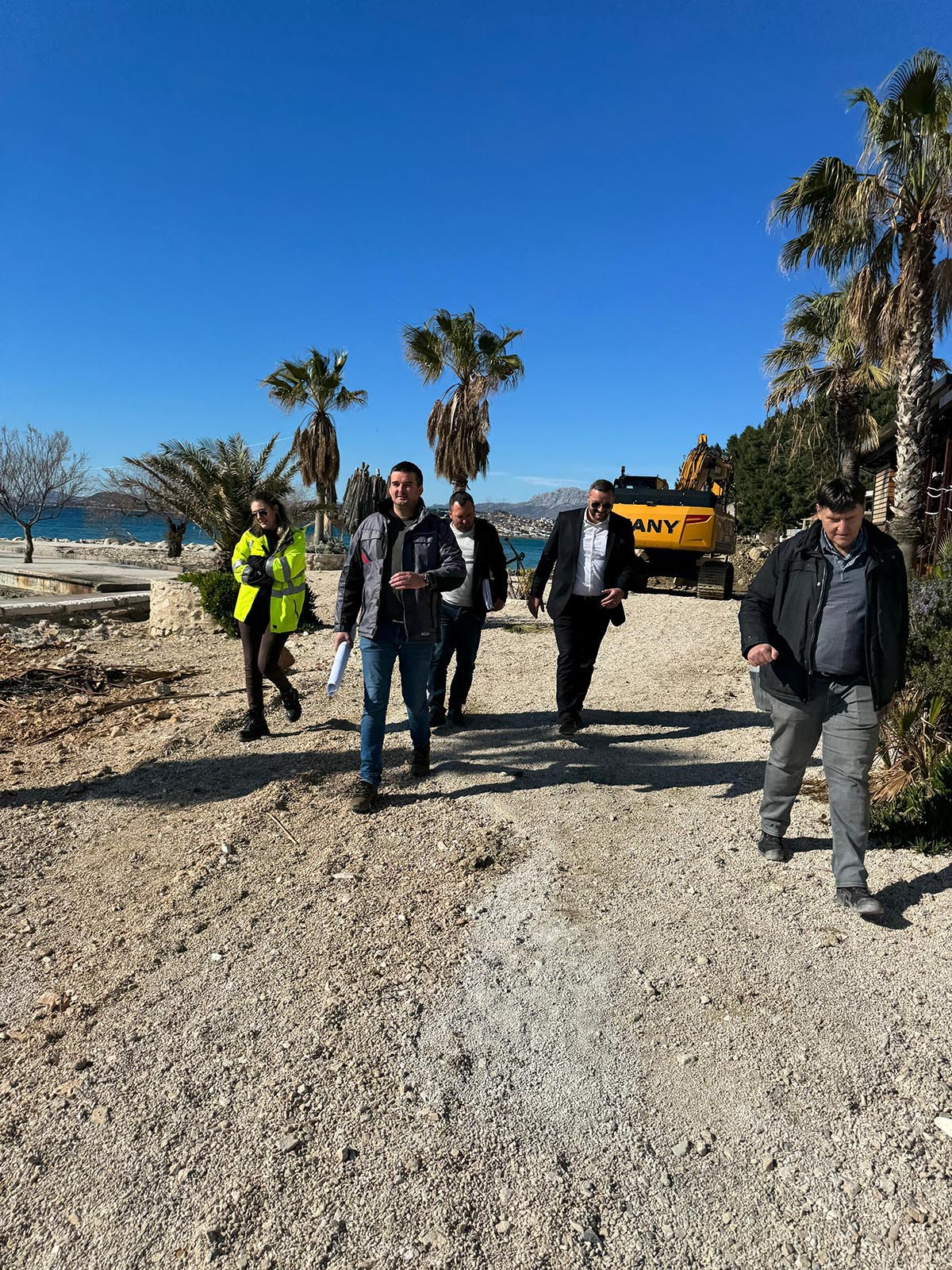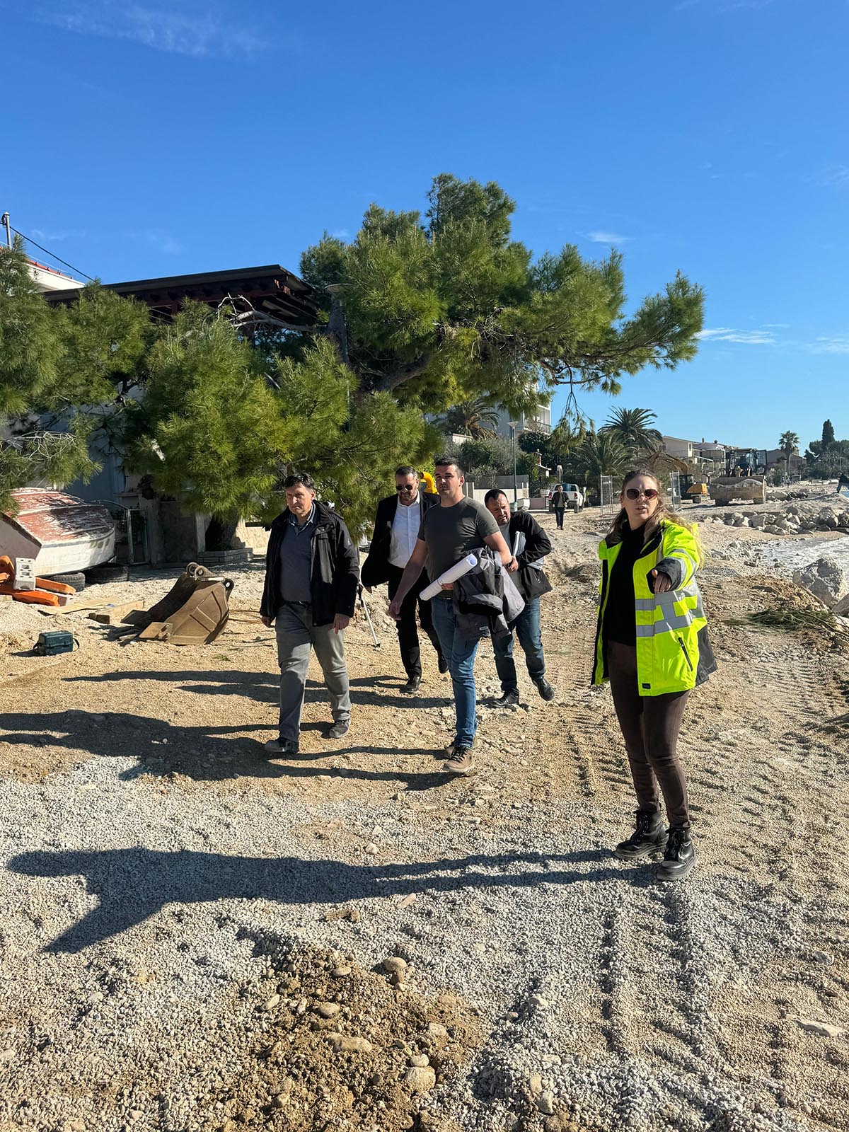 Načelnik Mijo Dropuljić zajedno sa predstavnicima tvrtke izvođača radova, obišao je radove na izgradnji novog kanalizacijskog cjevovoda na obalnom pojasu u Grljevcu.