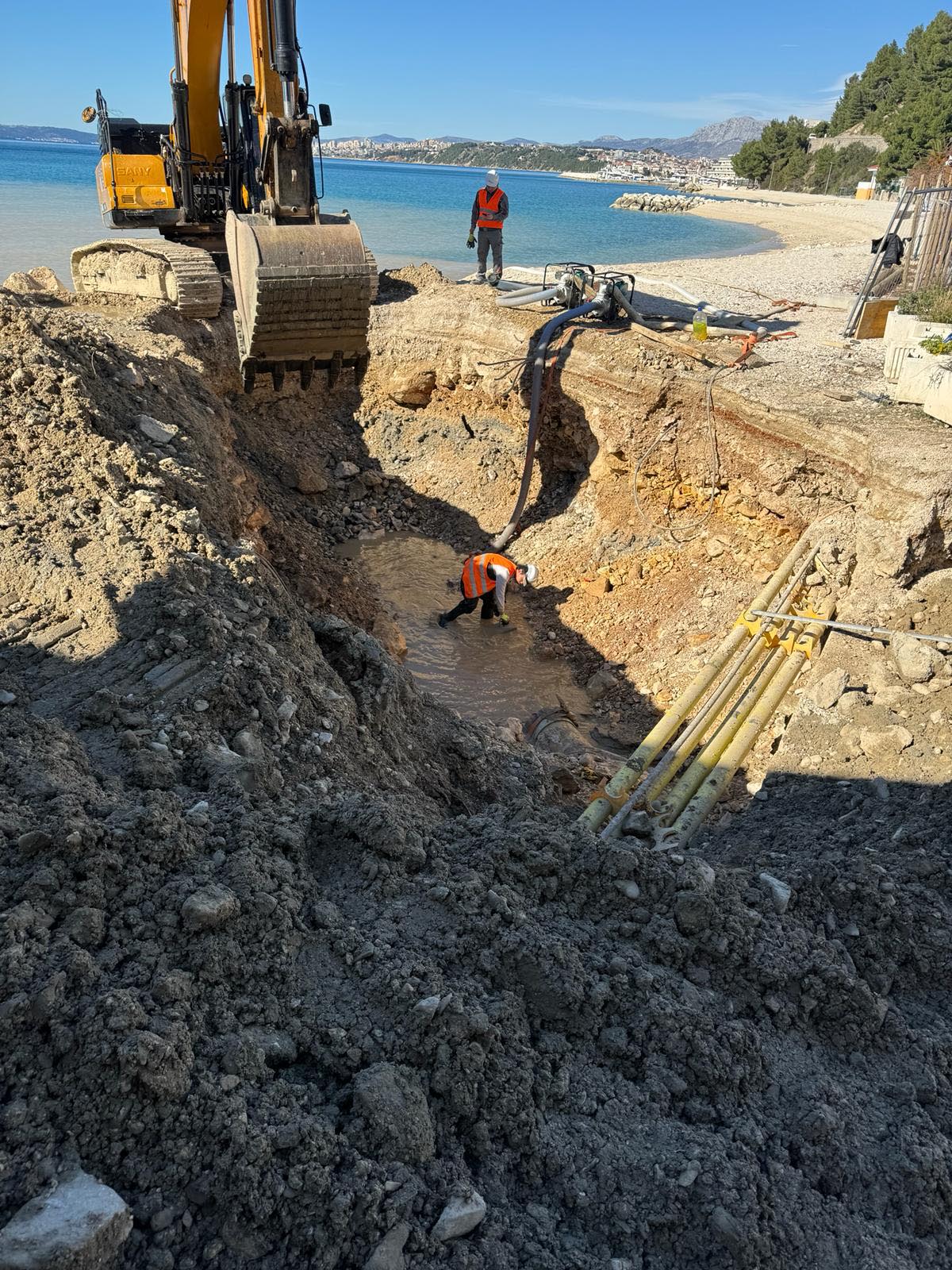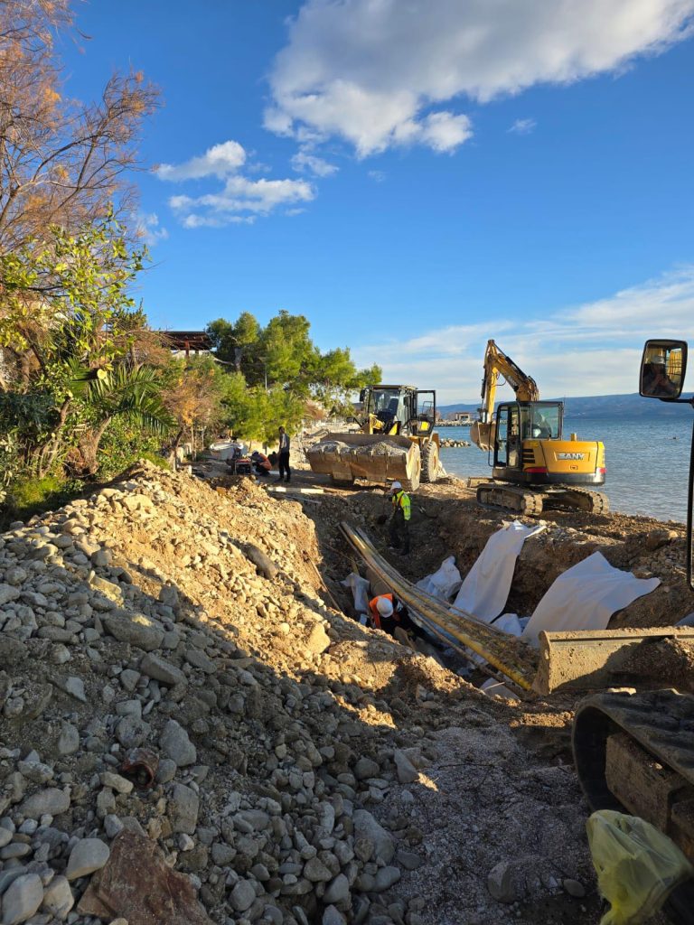 Riječ je o radovima u sklopu „Projekta poboljšanja vodno-komunalne infrastrukture Split – Solin“. Zadovoljan sje dinamikom kojom se izvode radovi, a predviđeni rok završetka na obalnom pojasu je krajem ove godine, s tim da će radovi biti obustavljeni tijekom turističke sezone.