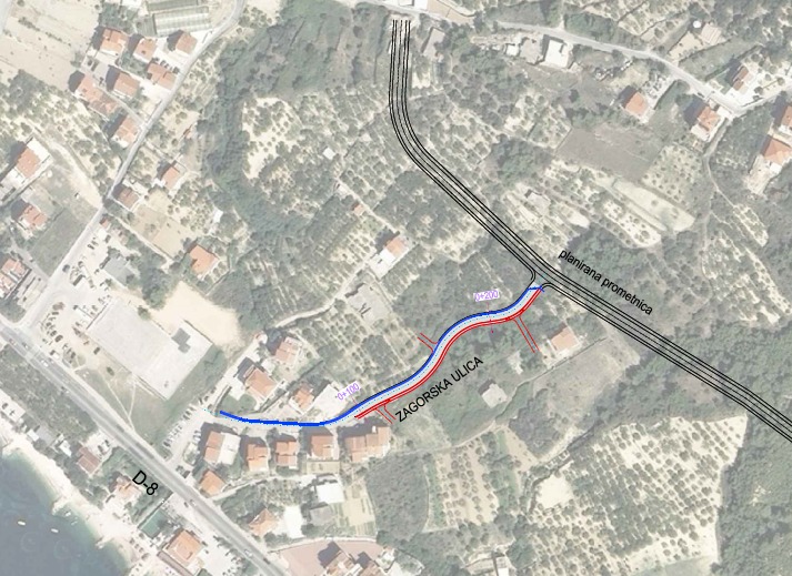 Investitor Općina Podstrana, u suradnji s Hrvatskim vodama i tvrtkom Vodovod i kanalizacija Split, pristupila je u veljači 2024. godine, temeljem ishođene pravomoćne građevinske dozvole, programu građenja i osiguranim sredstvima u Općinskom proračunu, izgradnji Zagorske ulice u svrhu komunalnog opremanja građevinske zone naselja. Izgradnjom prometnice širi se ulična mreža naselja i omogućava kolni i pješački prilaz građevinskim parcelama. Prometnica se ujedno koristi kao koridor za polaganje komunalne infrastrukture, a planirana je kao sabirna ulica s poprečnim profilom koji se sastoji od kolnika za dvosmjerni promet širine 5.50 m, te pješačkog pločnika širine 1.60 m koji se pruža u kontinuitetu istočnim rubom prometnice. Dakle ukupne minimalne širine zahvata od 7.10 metara, na način da su kote prometnice usklađene s kotama na graničnim građevinskim parcelama. Duljina reguliranog kanala iznosi 225 m, u duljini 142.50 m pruža se u zahvatu planirane prometnice, a u duljini 82 m regulirani kanal izvodi se prekopom u trupu postojeće prometnice. Ukupna površina prometnice koja je predmet izgradnje iznosi 853 m2, novoizgrađene duljine oko 140 metara.