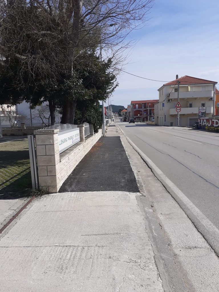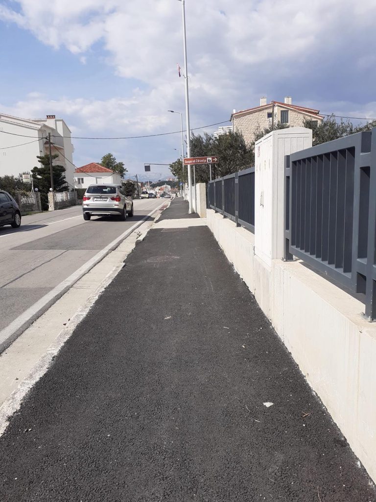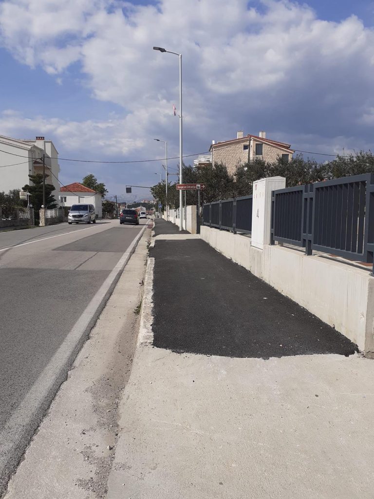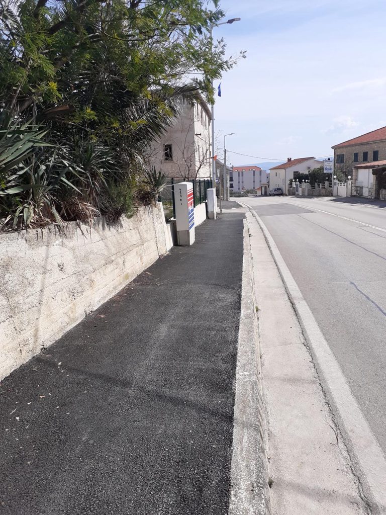 U sklopu radova uklonjen je oštećeni asfaltni sloj koji je predstavljao opasnost za pješake i bicikliste, pripremljena nova nosiva podloga i izrađen novi asfaltni sloj u punoj širini nogostupa.