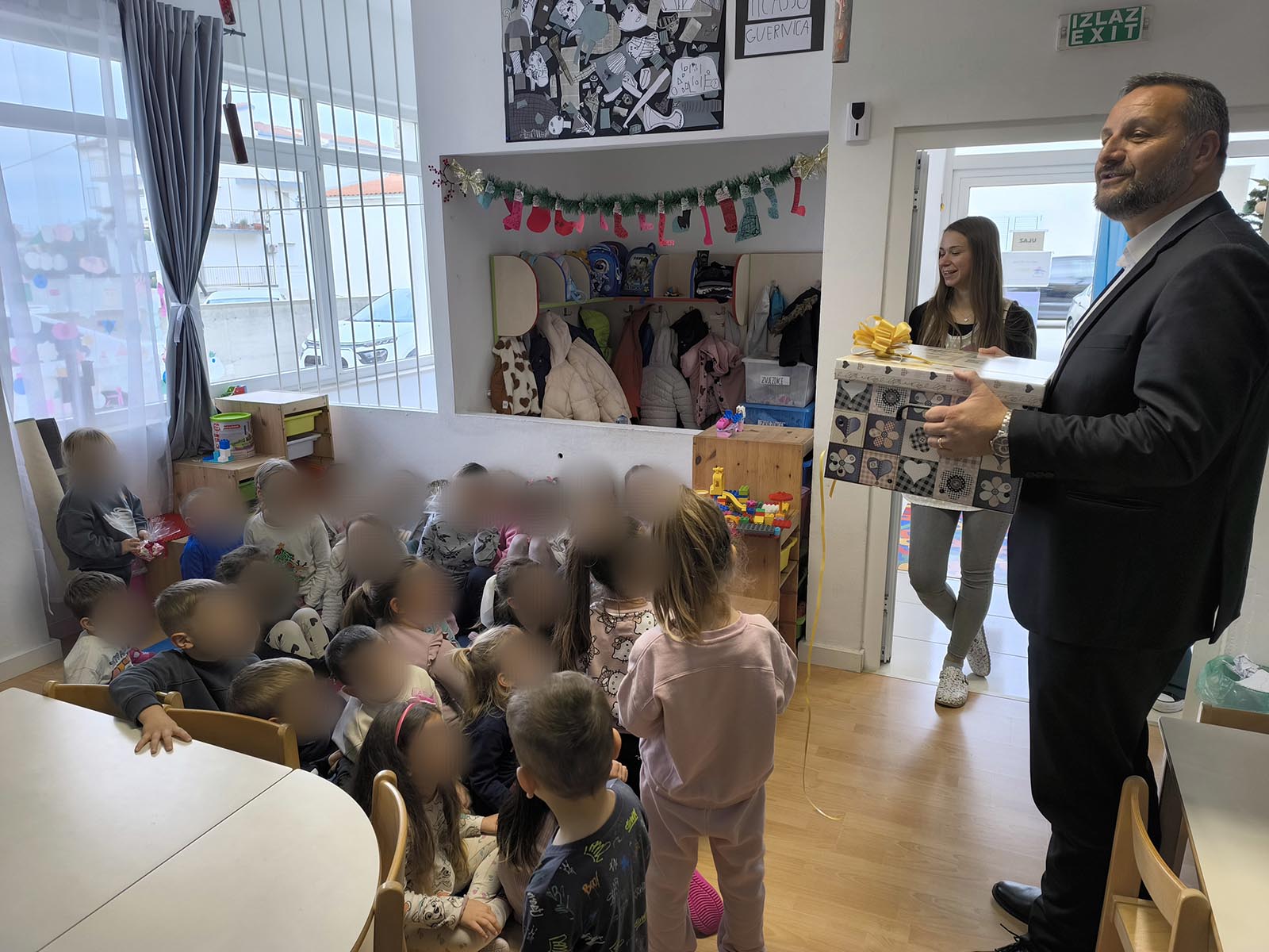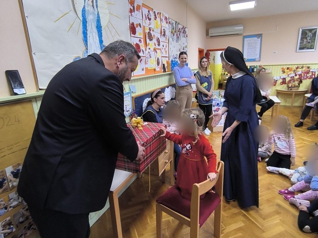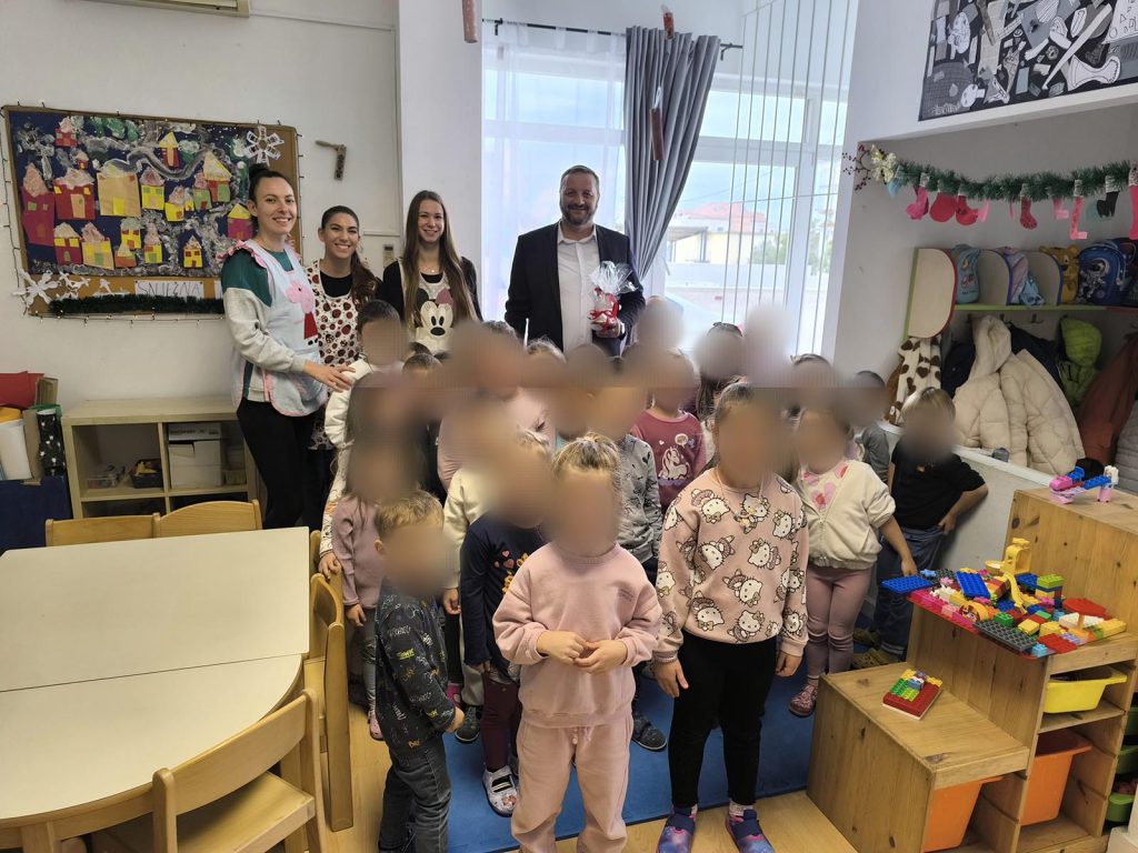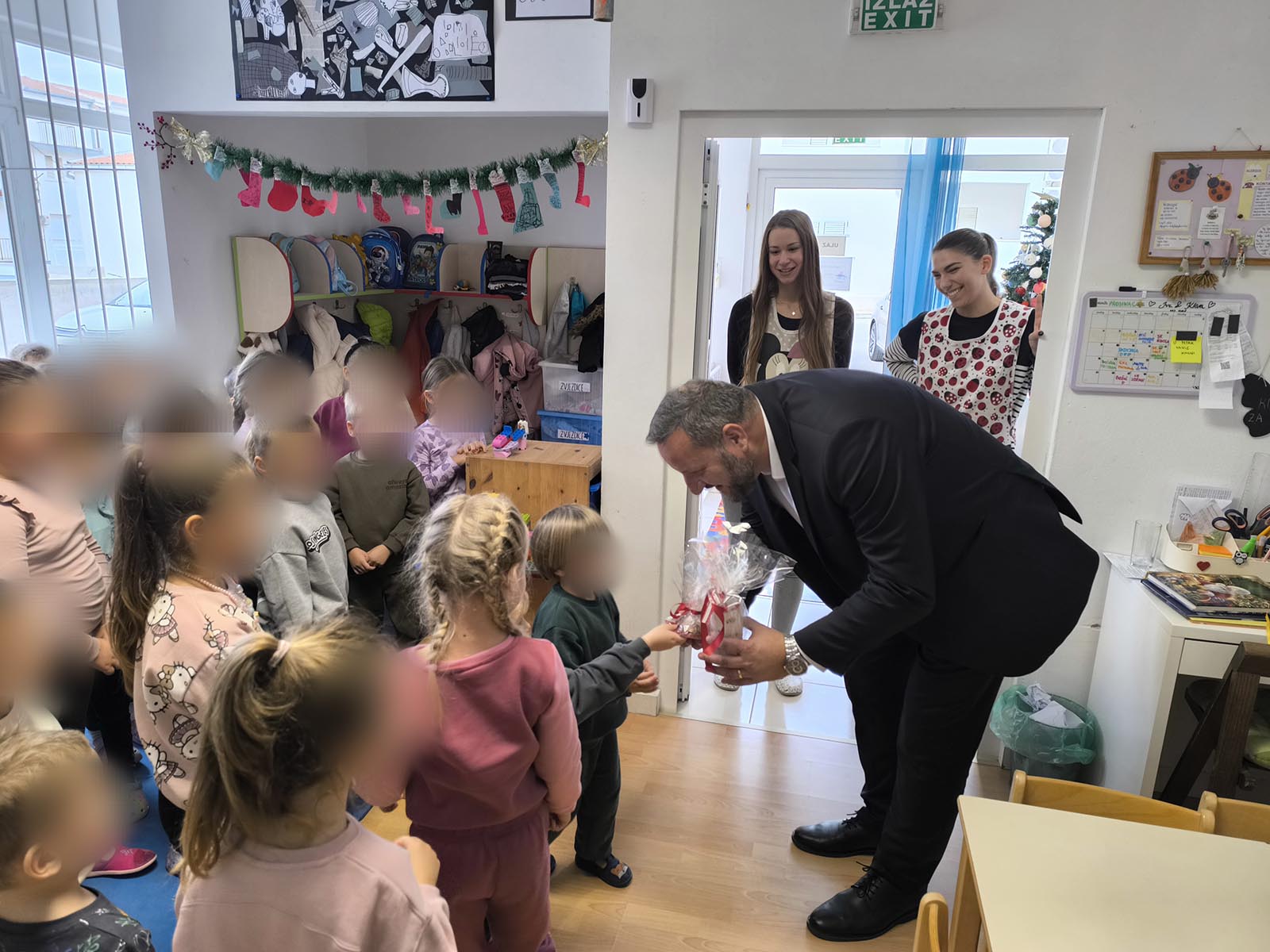 U zajedničkom druženju s djecom i porukom da je briga za najmlađe prioritet tijekom cijele godine, a ne samo u blagdansko vrijeme, uručio im je prigodne darove: različiti didaktički materijal i slatkiše.