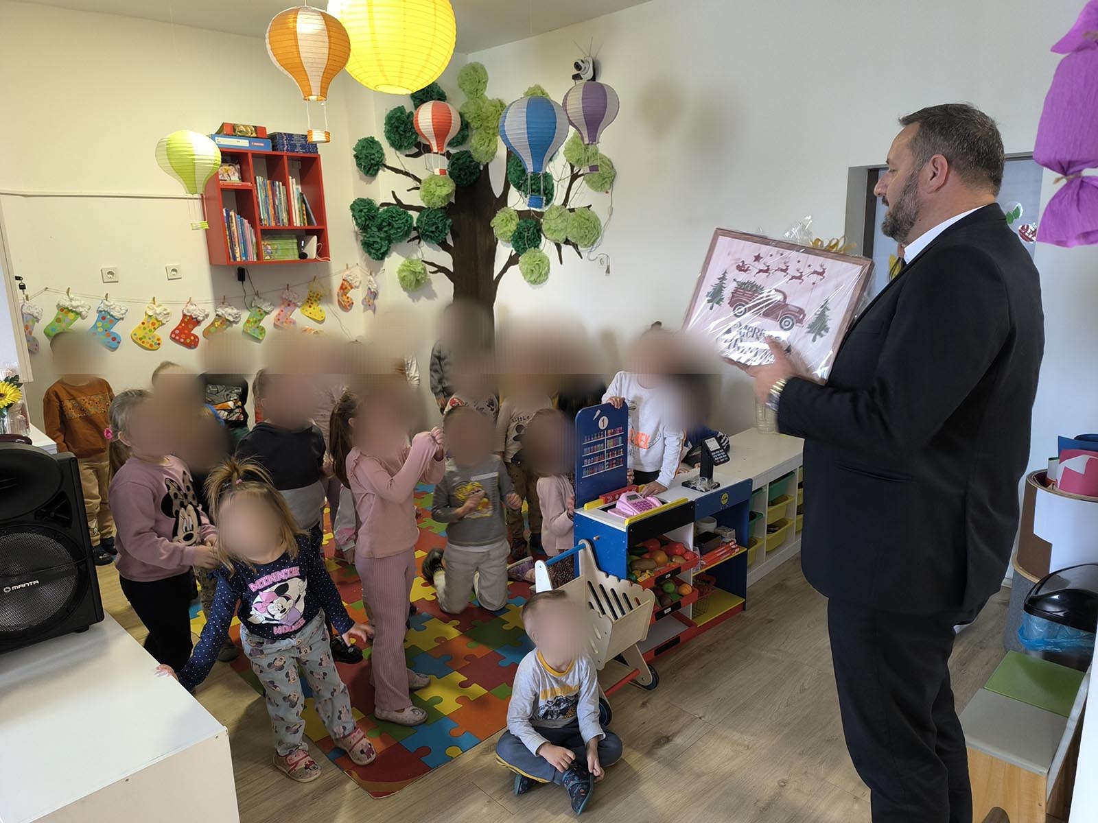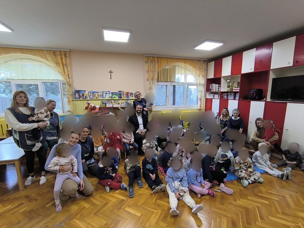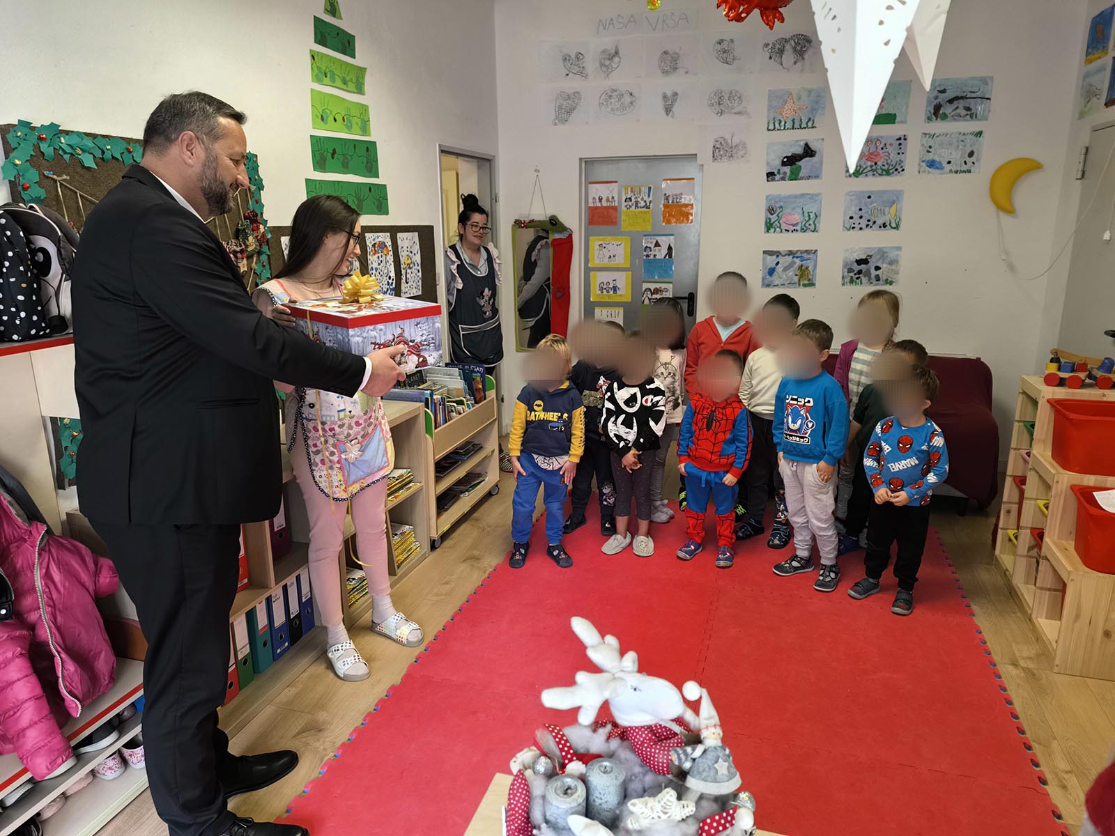 U zajedničkom druženju s djecom i porukom da je briga za najmlađe prioritet tijekom cijele godine, a ne samo u blagdansko vrijeme, uručio im je prigodne darove: različiti didaktički materijal i slatkiše.