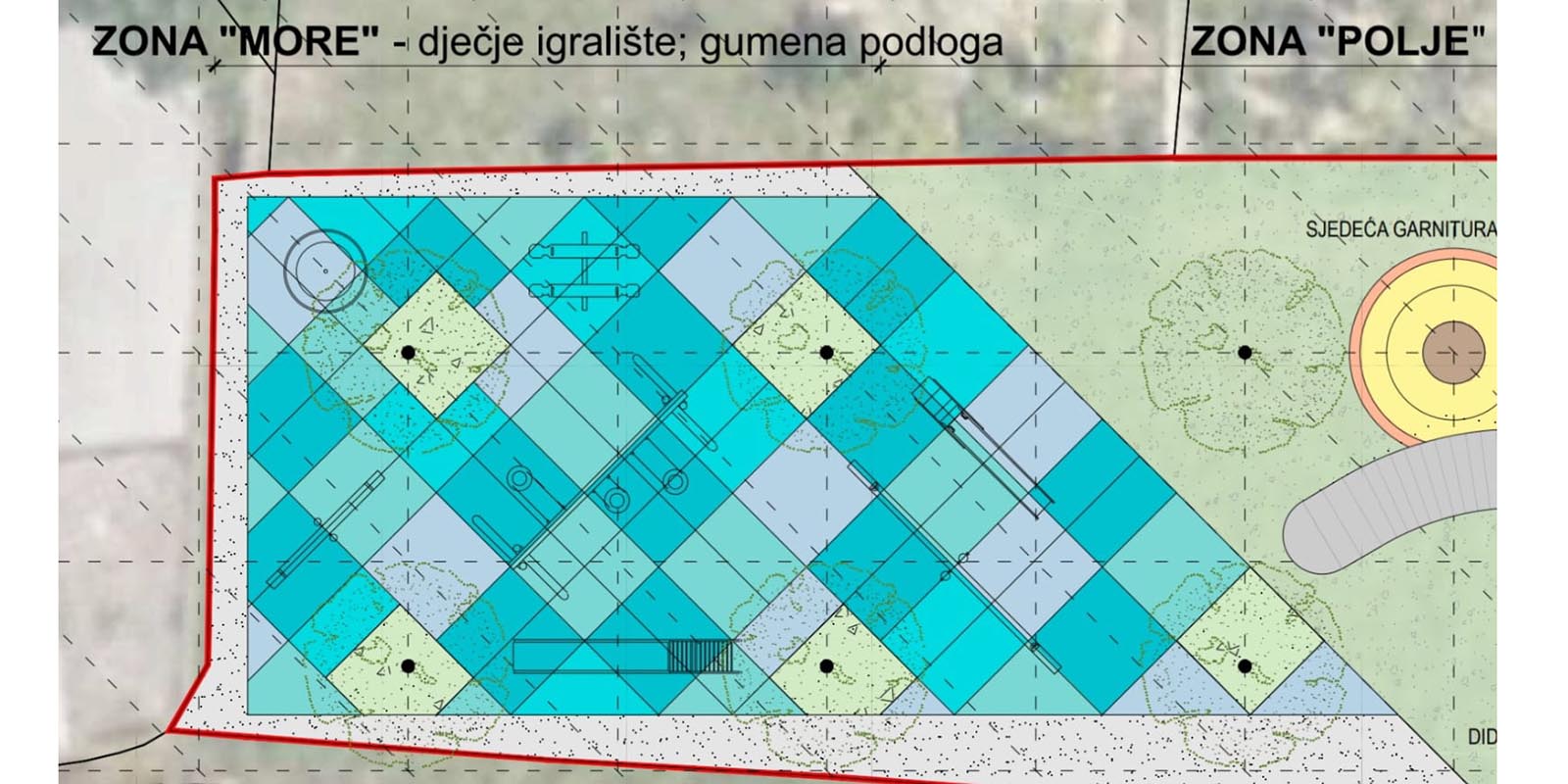 ZONA “MORE” – dječje igralište sa gumenom podlogom i funkcionalnom opremom (dječja igrala) kako bi se djeci osigurao bolji psihofizički razvoj.