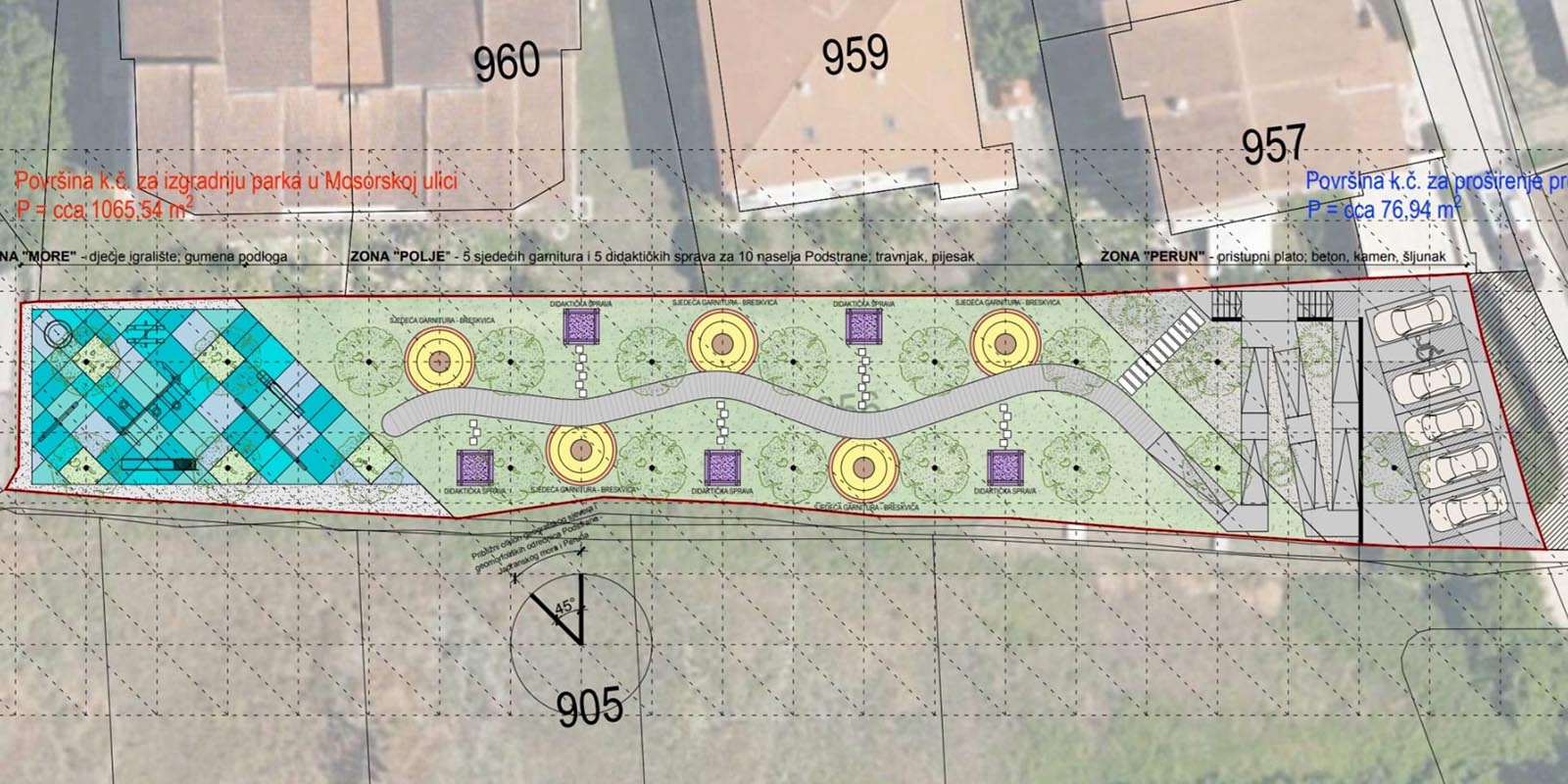 Kroz program građenja komunalne infrastrukture na ovoj čestici izgraditi će se i opremiti park i dječje igralište.