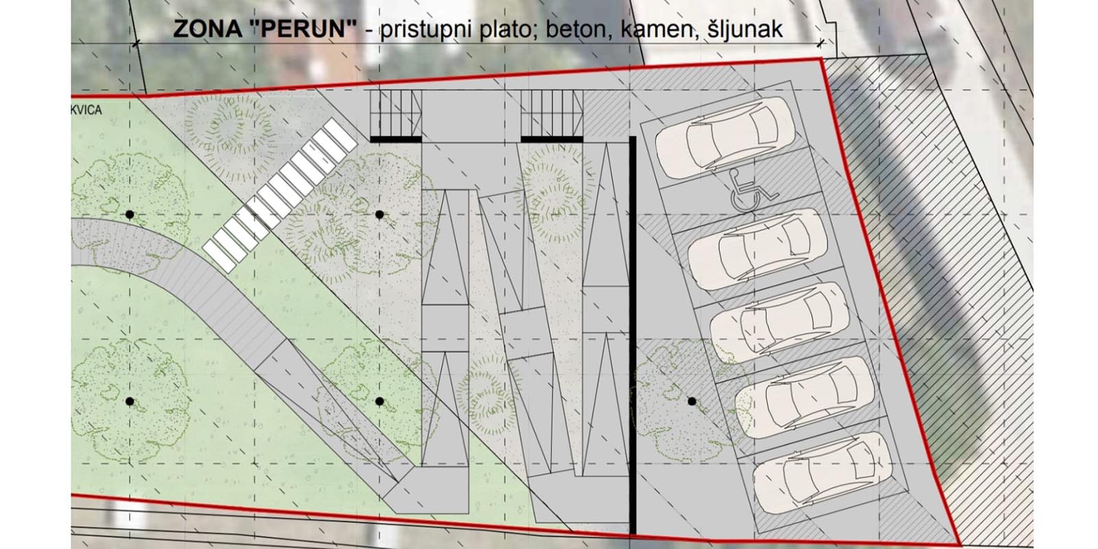 ZONA “PERUN” – 6 parkirnih mjesta i pristupna rampa za park i dječje igralište