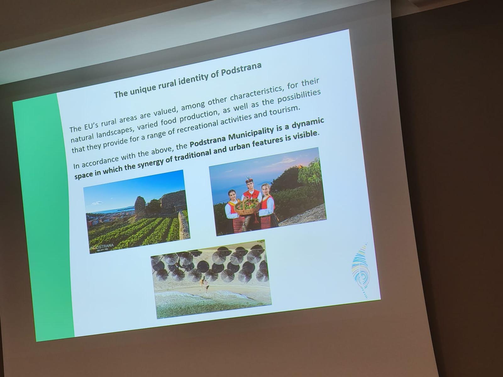 Voditeljica projekta i predstavnica Općine Podstrana, gđa Andrijana Dedić, predstavila je dosadašnje općinske EU projekte te glavna turistička obilježja Podstrane, kao i prometne izazove s kojima se učestalo mještani Općine Podstrana suočavaju, a koji su posebno izraženi u vrijeme turističke sezone.