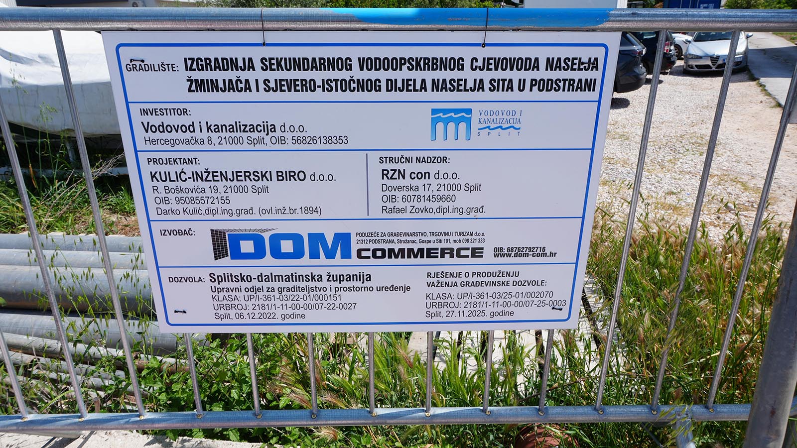 Početak radova obilježen je uvođenjem izvođača u posao na gradilištu u Elemovoj ulici, uz nazočnost načelnika Općine Podstrana Mije Dropuljić, direktora Ivice Perić ispred Vodovod i kanalizacija d.o.o. Split kao naručitelja te predstavnika izvođača radova Dom Commerce d.o.o..