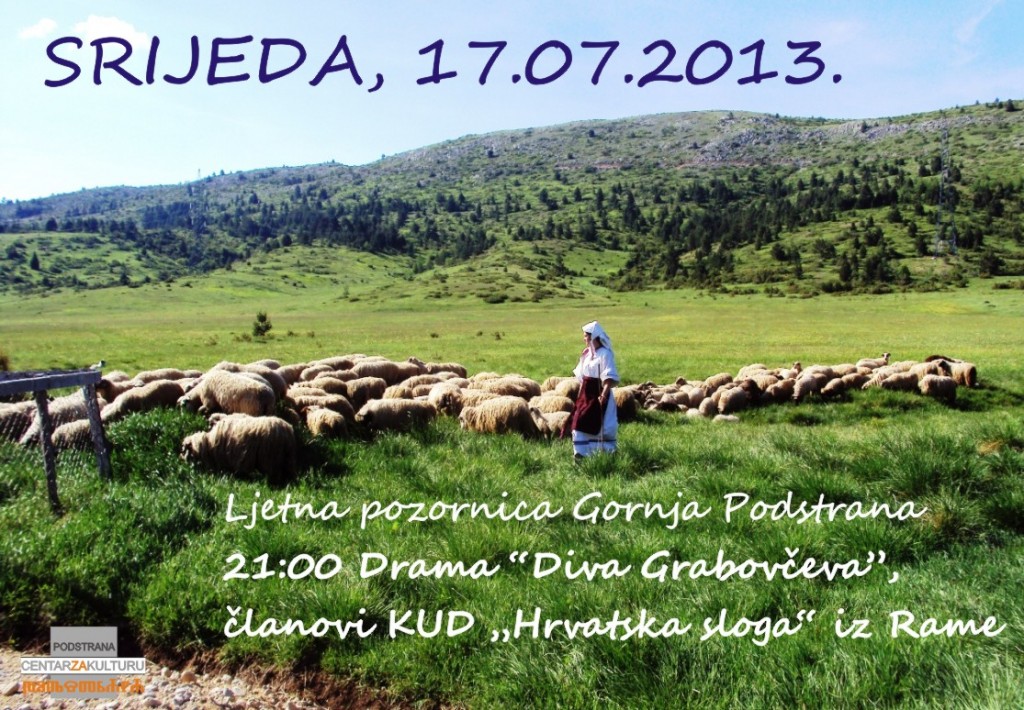 SRIJEDA, 17.07.2013. Ljetna pozornica Gornja Podstrana 21:00 Drama “Diva Grabovčeva”, članovi KUD „Hrvatska sloga“ iz Rame