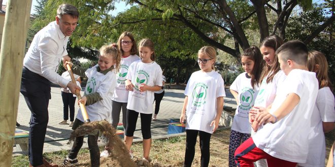 Kao što smo i najavljivali program je započeo sadnjom kostela i maslina. Učenici su „zasukali“ rukave i spretno zatrpavali rupe oko novih stabala. Spremno su im se pridružili i gradonačelnik Dalibor Ninčević i Frane Polić, viši stručni suradnik za pripremu i provedbu EU projekata.