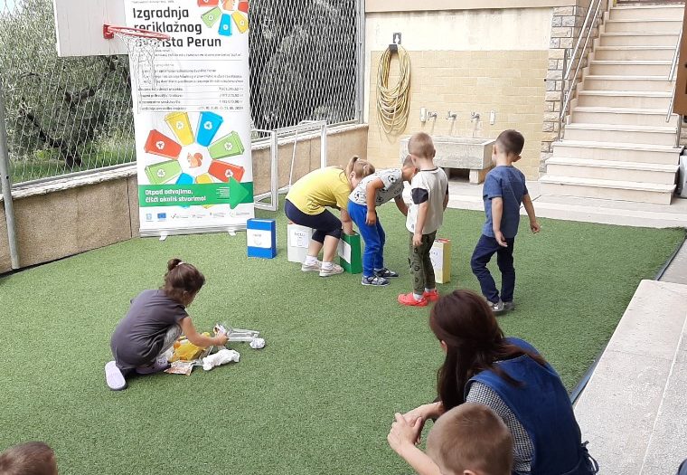 Predstavnica tvrtke Alfa atest d.o.o. iznijela je stručno predavanje na temu „Što je otpad, a što smeće?“. Edukacija je potaknula djecu na razmišljanje da miješani komunalni otpad prikupljen u našim domovima ne nestaje iz okoliša kada ga prikupi komunalna tvrtka, već da završava na odlagalištu otpada. Upravo odvajanjem otpada po vrsti u kućanstvu i korištenjem budućeg reciklažnog dvorišta „Perun“ povećati će se stopa odvojeno prikupljenog komunalnog otpada te smanjiti količina otpada na odlagalištu.