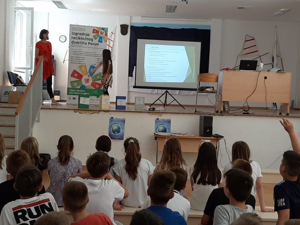 U sklopu projekta „Izgradnja reciklažnog dvorišta Perun“ dana 19.06.2020. održano je predavanje o održivom gospodarenju otpadom u Osnovnoj školi Strožanac u Općini Podstrana za djecu trećih razreda.