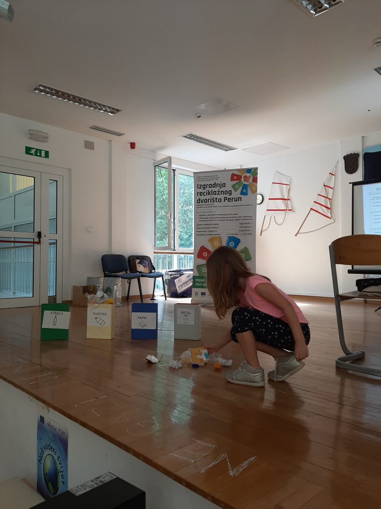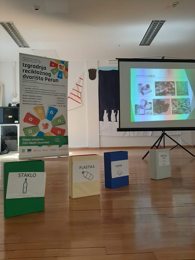 Predstavnica tvrtke Alfa atest d.o.o. iznijela je stručno predavanje na temu „Što je otpad, a što smeće?“. Djeca su vrlo brzo usvojila pravila igre gospodarenja otpadom, te sudjelovala u pravilnom odvajanju otpada. Uspostavom reciklažnog dvorišta „Perun“ povećati će se stopa odvojeno prikupljenog komunalnog otpada, iskoristiti vrijedna svojstva otpada, sačuvati prirodni resursi, te smanjiti količina otpada na odlagalištu.