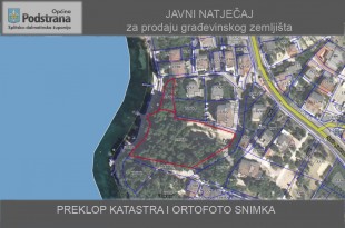 Općina Podstrana objavljuje da je raspisan: Predmet javnog natječaja je prodaja građevinskog zemljišta u vlasništvu Općine Podstrana i to: 1. građevinsko zemljište označeno kao kat. čest. 2266/1, upisano u z.k.ul. broj 1902 K.O. Donja Podstrana površine 3.844 m2, 2. građevinsko zemljište označeno kao kat. čest. 2266/3, upisano u z.k.ul. broj 489 K.O. Donja Podstrana površine 290 m2. Nekretnine se prodaju …
